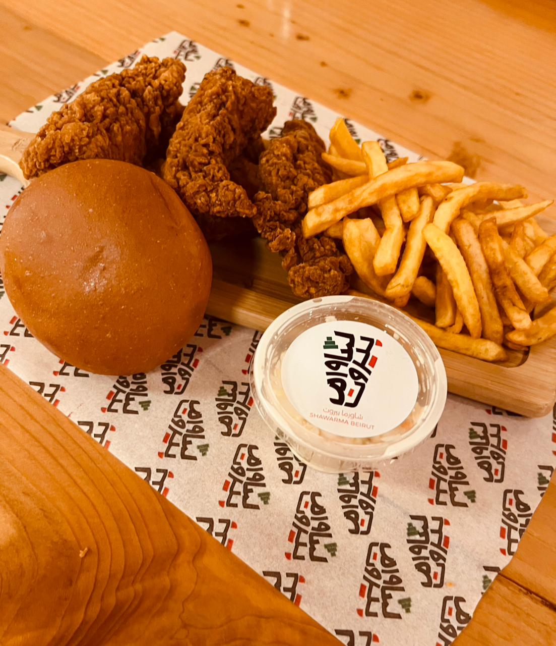 5 pieces of chicken crispy, served with fries, garlic sauce, coleslaw and soft bun.